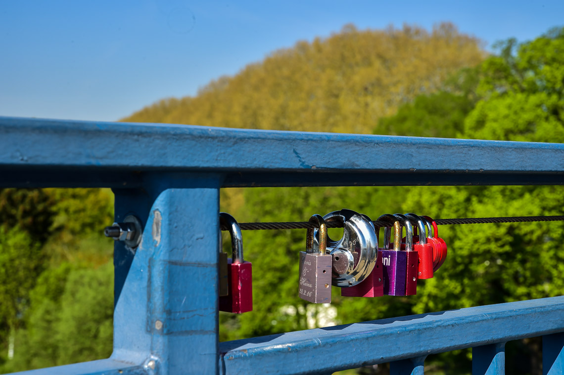 Liebesschlösser an der Brücke über der Ein- und Ausfahrt zum Schiersteiner Hafen. 2018 Volker Watschounek Liebesschlösser an der Brücke über der Ein- und Ausfahrt zum Schiersteiner Hafen. 2018 Volker Watschounek Schiersteiner Hafen