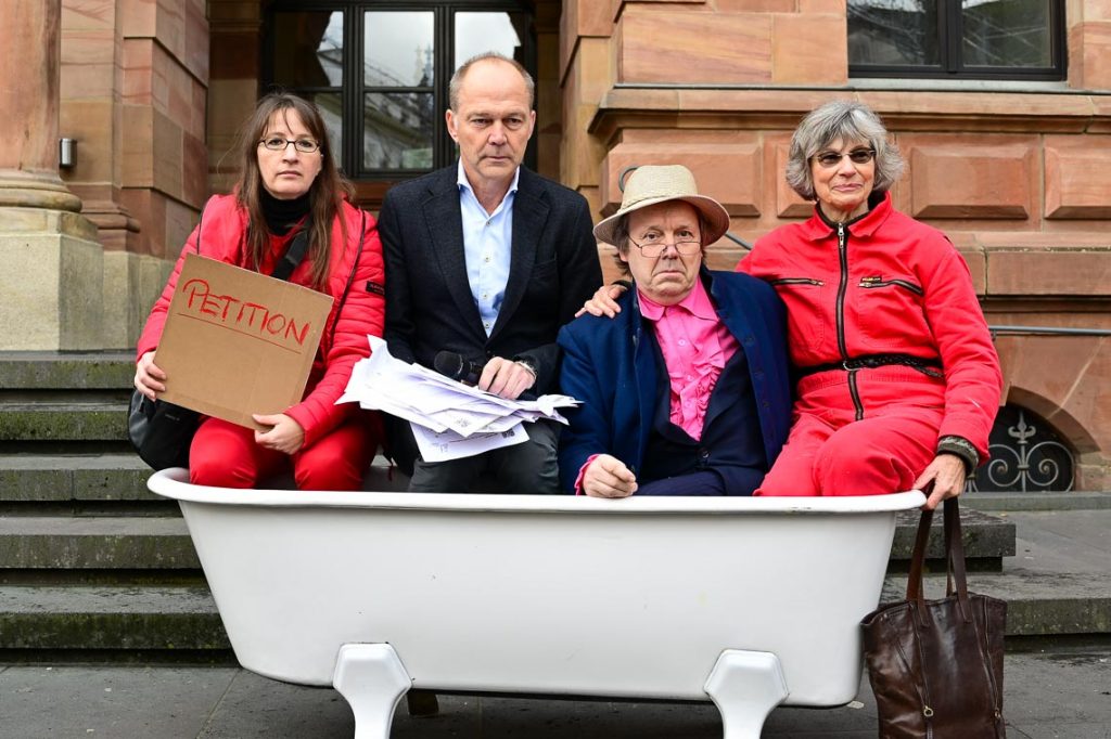 In einer außergewöhnlichen Aktion des Arbeitskreis Stadtkultur Wiesbaden wurde am Mittwochvormittag gegen die geplanten Etatkürzungen für die Kultur protestiert. Der städtische Kämmererentwurf für den neuen Haushalt sieht vor, dass alle freien Kulturbetriebe im Jahr 2023 20 Prozent weniger Zuschuss erhalten sollen als im Vorjahr. Die Auswirkungen dieser Kürzungen könnten von Arbeitsplatzabbau über Programmreduzierungen bis hin zur Schließung von Kultureinrichtungen reichen.