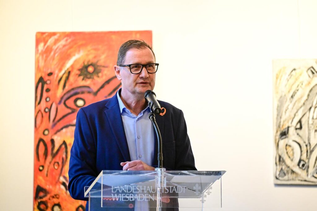 „Die frühen 2000er Jahre, die waren sehr prägend. Eine eigene, schwere Erkrankung, die Erkrankung in der Todesfahrt. In dieser Zeit wurde ihr die Malerei Stütze und Ventil zugleich,“ so Peter Kiel ©2026 Wiesbaden lebt!