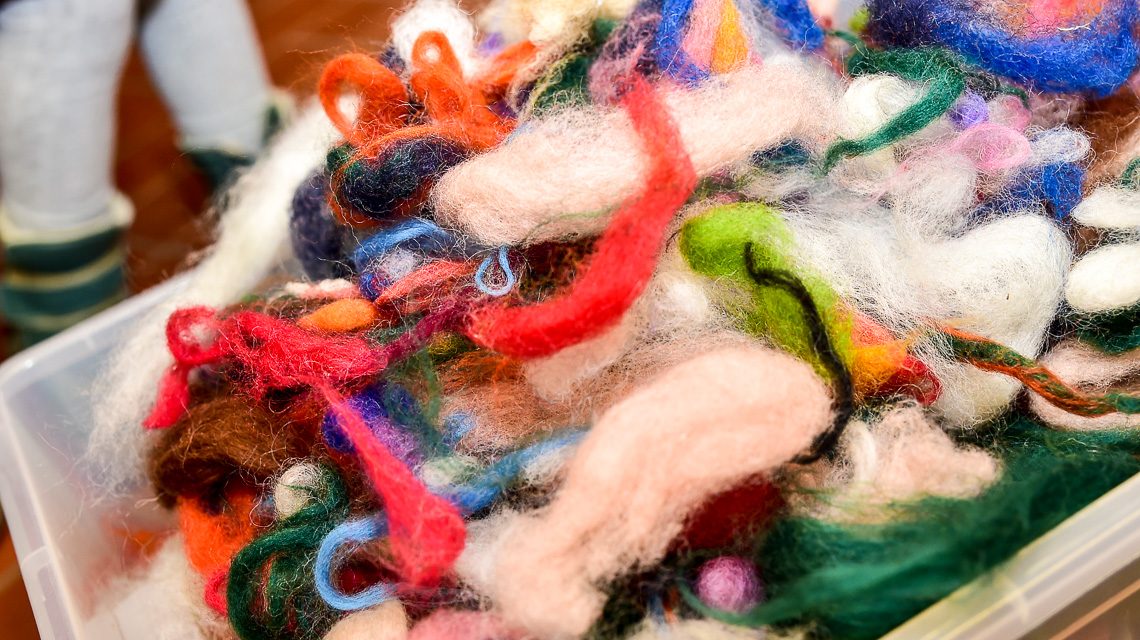 Das Schaf ist für den Menschen ein wichtiges Nutztier. Mit seinem Fell spendet es Wolle. Mit einem Spinnrad wird die zu Fäden verarbeitet, sodass daraus tolle Schafwolle-Pullover entstehen. In der Kreativwerkstatt wird Wolle aber auch im Urzustand verarbeitet.