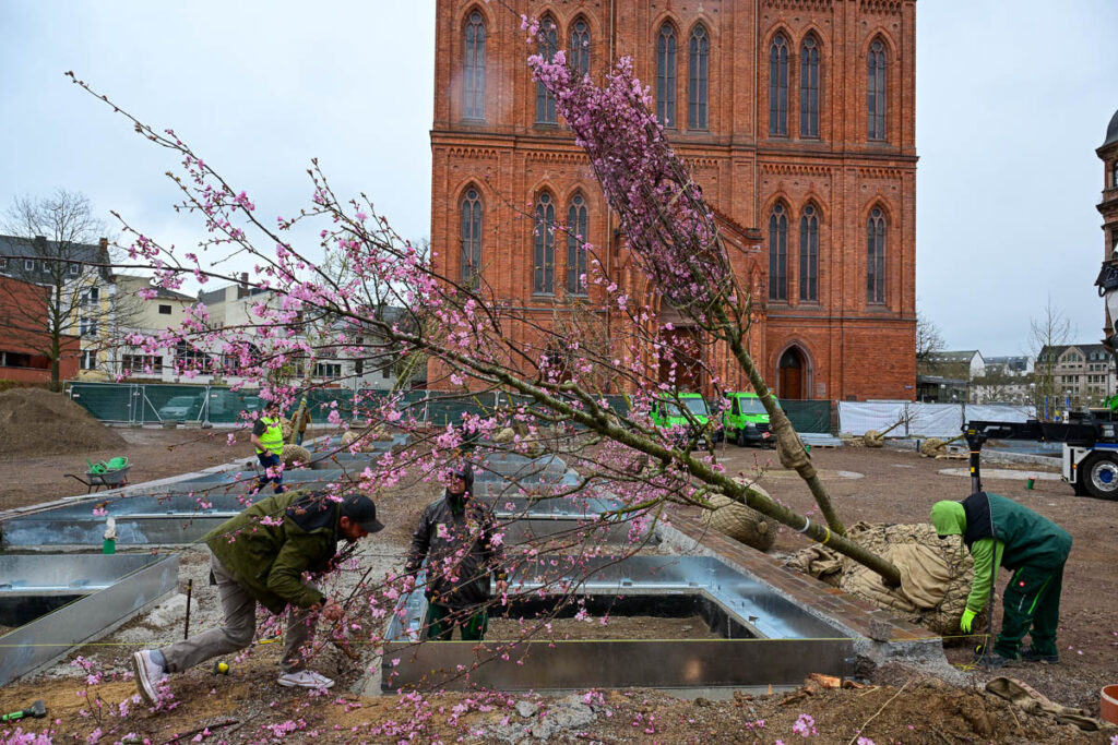 Der Schlossplatz verändert sich – und diesmal wächst die Veränderung sichtbar in die Höhe. Seit Mittwoch, 25. März, pflanzt die Stadt 24 neue Bäume und setzt damit ein Zeichen, das weit über dekoratives Grün hinausgeht. Es geht um Klima, um Aufenthaltsqualität – und um die Frage, wie sich eine Innenstadt anfühlen soll.