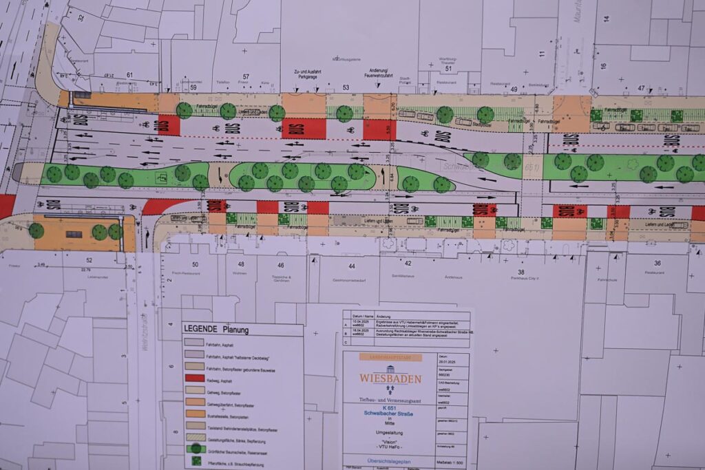 Die Schwalbacher Straße trennt seit Jahrzehnten mehr, als sie verbindet. Auf der einen Seite liegt das historische Fünfeck, auf der anderen das innere Westend – dazwischen rollt Verkehr, als müsse er irgendwohin, nur bitte nicht stehen bleiben. Verkehrsdezernent Andreas Kowol erinnert daran, dass sich Wiesbaden „seit fast 30 Jahren“ mit genau dieser Trennwirkung auseinandersetzt. Beschlüsse gab es viele, Lösungen weniger. Jetzt kommt eine – erst einmal als Zwischenzustand, aber mit klarer Richtung: Die Straße soll nicht länger wie eine städtische Schneise wirken, sondern wie ein Stadtraum.