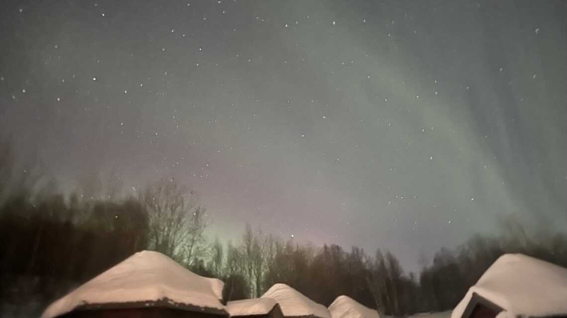 Kurz darauf das nächste Highlight: die ersten Polarlichter. Zart zunächst, dann deutlicher. Grün schimmernd über dem dunklen Himmel. Ein stiller Empfang hinter dem Polarkreis.