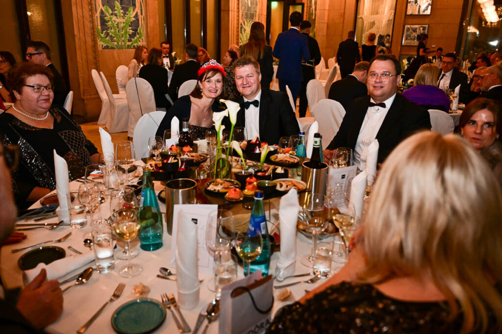 Wer die Nacht lieber elektronisch verbrachte, folgte DJ Mojo und Morgentraum in den Party-Bereich. Dort stieg die Temperatur, dort das Wiesbadener Nachtleben im Takt der Beats bis zum Morgengrauen. Zwischen Musik und Gesprächen glitt eine Luftartistin an Ringen und Strapaten unter der hohe Decke im Friedrich-Thiersch-Saal entlang – ein Moment zwischen Varieté, Eleganz und staunender Stille.